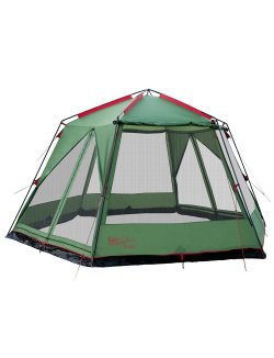 - Каркас внешний стальной, диаметром 16 мм — выдержит штормовые ветра и сильные нагрузки. Внешний каркас делает высокий шатер более ветроустойчивым